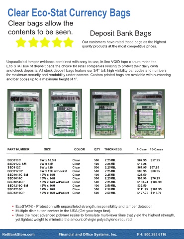 and check deposits. All stock deposit bags feature our 3/4” tall, high visibility bar codes and numbers