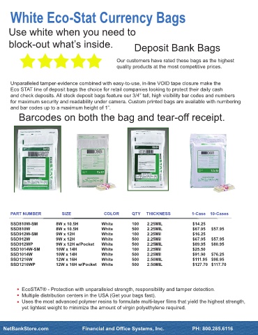 and check deposits. All stock deposit bags feature our 3/4” tall, high visibility bar codes and numbers